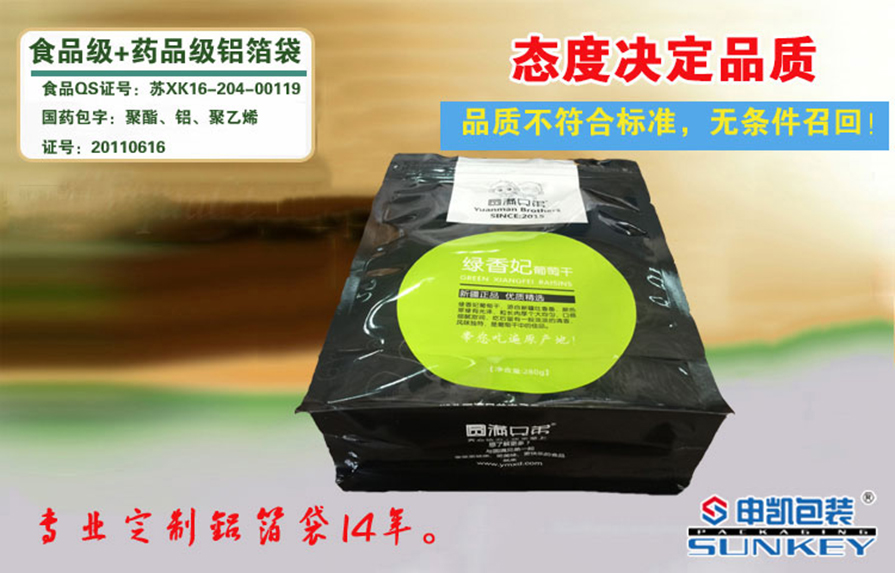 專業(yè)定制葡萄干包裝袋,拉鏈袋,可站立,易撕口,歡迎致電400-678-2778進(jìn)行咨詢