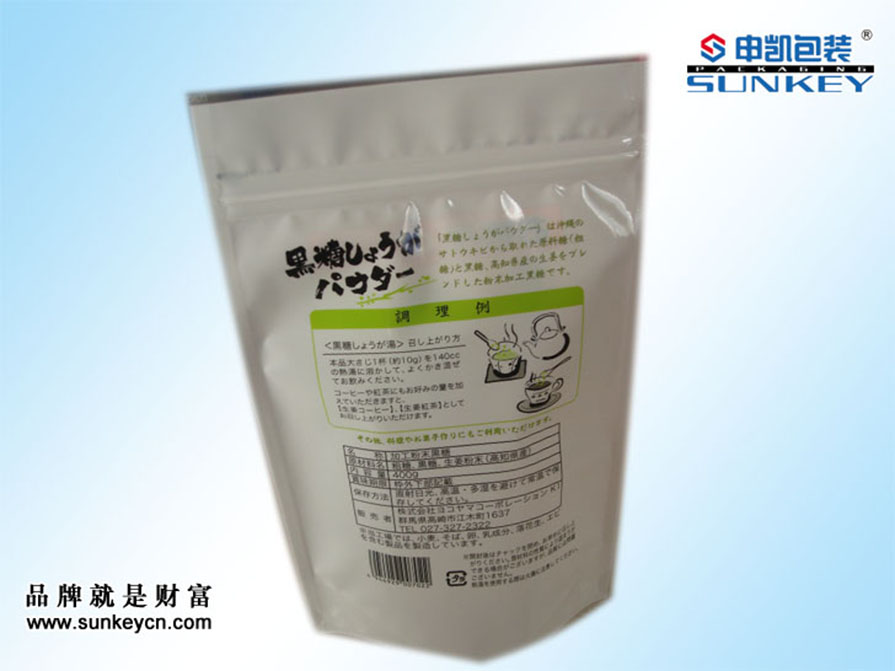 材質(zhì):PET/NY/AL/PE(一般包裝)PET/NY/AL/CPP(高溫蒸煮) 厚度:70~180微米 袋形:自立拉鏈袋